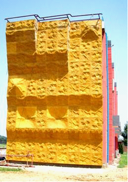 依附墻面這種方法是在現(xiàn)有墻壁上架設鋼架結構及固定連接裝置,再將巖板固定在上面,最后設定攀巖路線,裝上巖塊即可。由于巖壁是附著于固定物上,不容易增加高度或寬度,這是目前最普通的做法,但最主要的考慮,是巖壁結構體除了必須要能夠承受板面結構的重量,以及使用者墜落時產生的沖擊力量外,更要考慮這些相應力,是否會對原有建筑結構造成破壞。若巖壁設在室外則還需要考慮氣候所造成的影響,對鋼架的要求則視巖壁大小及外型變化而定。
