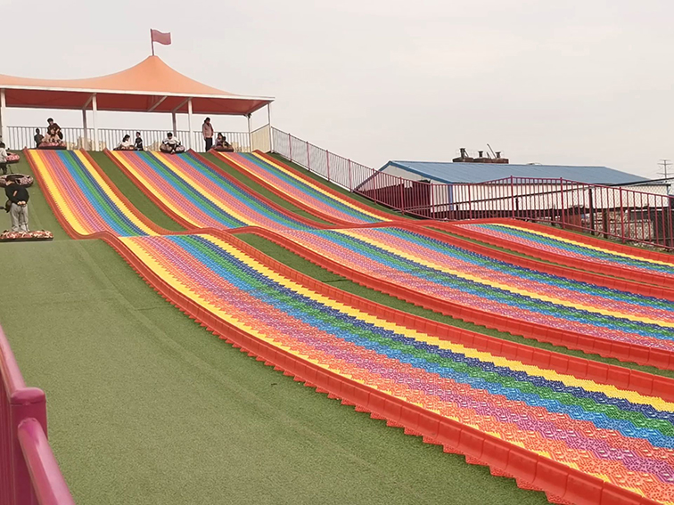 設(shè)計亮點:彩虹漸變配色極具辨識度,全模塊化拼接結(jié)構(gòu)可靈活適配不同坡度與場地,適配 3 歲以上全年齡段人群,包括成人親子互動。