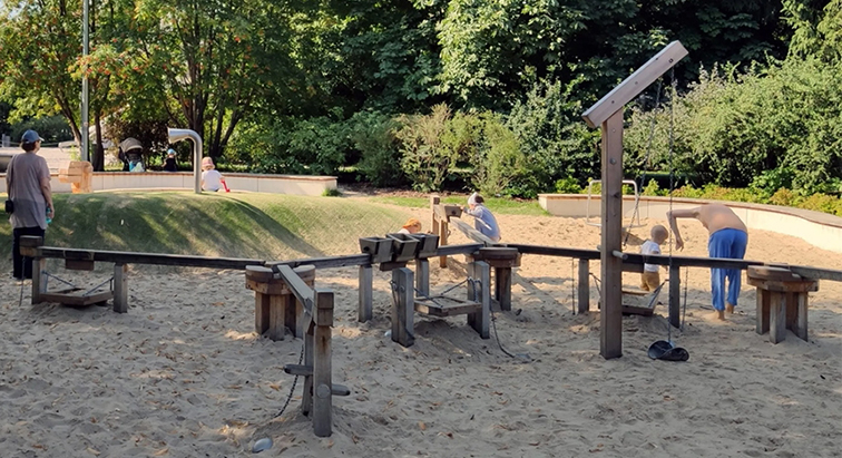 它專為兒童打造:孩子可通過(guò)操作杠桿、拉動(dòng)鏈條等方式與沙坑互動(dòng),在嬉玩中鍛煉動(dòng)手能力與協(xié)作意識(shí),家長(zhǎng)也可陪同參與,是親子陪伴的歡樂(lè)場(chǎng)。設(shè)備采用防腐原木材質(zhì),耐候性強(qiáng)且維護(hù)便捷,適配社區(qū)公園、親子樂(lè)園、郊野營(yíng)地的沙坑場(chǎng)景,既能提升自然游樂(lè)的體驗(yàn)感,也能吸引親子客群到訪,激活戶外空間的活力。